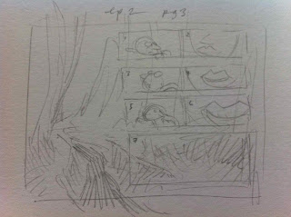 When designing comic strip pages, there's a whole load of different things that you need to include. It's a bit like being a film director in as much as you've got the visual elements, the dialogue, the pacing, the sound effects, the lighting, the overall look of the page and the comic as a whole. It's all quite a challenge. Here's some thumbnail layout's for a comic that I'm working on at the moment.
